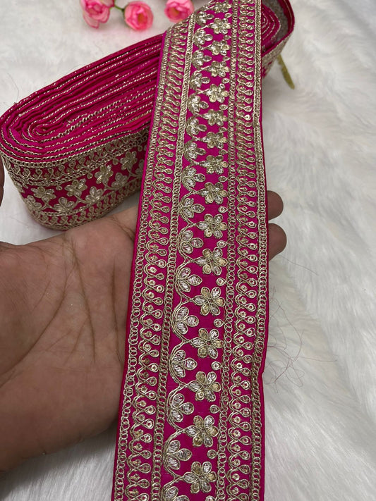 Elegant Embroidered Designer Lace Border ? 9 Meter Roll, 2.5 Inch Wide for Sarees, Dresses, and Crafts | Rani Pink