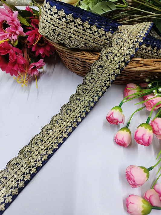 Embroidery Laces Saree Dupattas Borders ? Premium Quality, Intricate Embellishments for Sarees, Lehengas, Bridal Couture, and Luxury Home Decor – Navy Blue