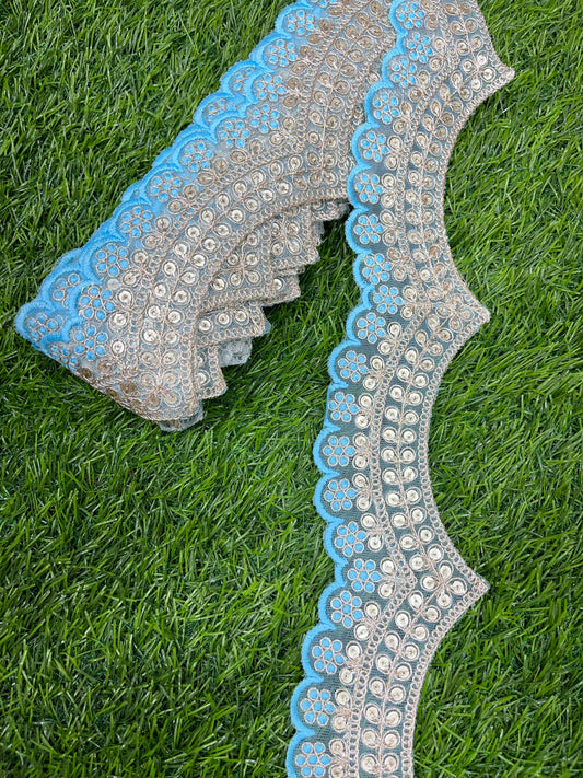 Embroidery Scallop Lace | Sequins Embellishment Trim | Craft Decorative Saree Lace ? 9 Meters, 2-Inch Width | Firozi