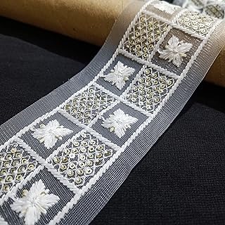 SYNC White Net Lace and Border Material for latkan Floral Flower Hanging jhallar Tassel Embroidered Laces Applique Fabric lace Sewing Supplies Cotton Work lace 9 metre