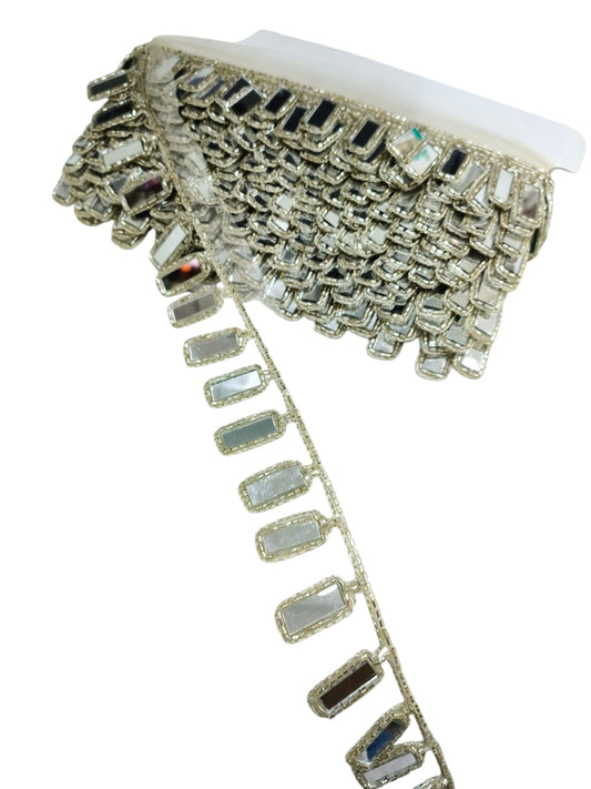 Handmade Cutdana Mirror Work Lace Borders ? Premium Quality, Intricate Embellishments for Sarees, Lehengas, Bridal Couture, and Luxury Home Decor – Pani Gold