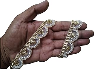 HITARTH ENTERPRISE Woal Moti Lace for Dresses, Sarees, Lehenga, Suits, Bags, Decorations, Borders, Crafts and Home Décor, Blouse (9 MTR, Silver)