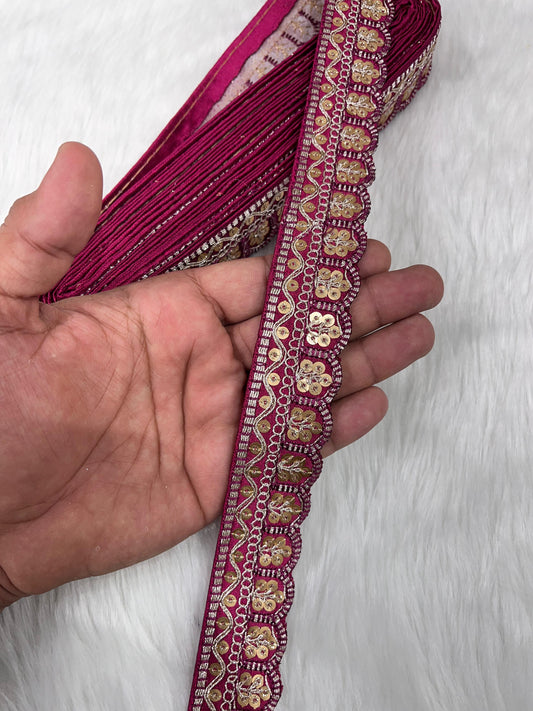 Indian Saree Lace Border Embroidered Trim - Floral Thread Decorative Ribbon (9 Meter) | Majanta