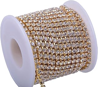 KAOYOO 1 Roll 10 Yards Crystal Rhinestone Close Chain Trim, SS16/4.0mm, Golden Chain with Clear Crystal Beads