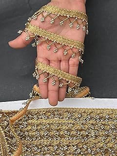 KAVYA FASHION Golden Nalki Pipe with Moti Hanging Lace for Saree Border Finetage for Dresses, Lehenga, Suits, Blouses, Dupatta, Chunri and Craft (9 Meters; 354 inch) (Pipe & Golden Moti Hanging)