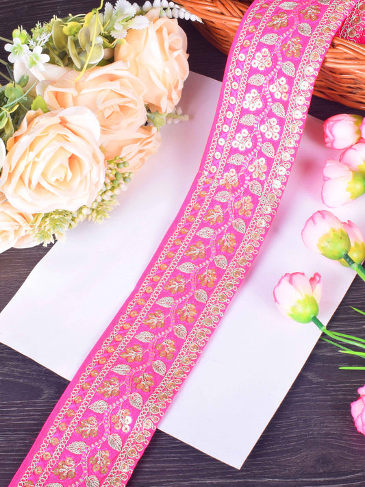 Neon Pink Floral Embroidered Sabhyasachi Lace ? 9 Meter Roll