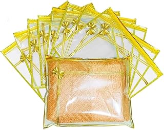 Non Woven Single Saree Cover, Golden Colour, Transparent saree cover with zip, Golden Gota lace Lining, Golden Border with Golden Gota Patti/Gota Flower. (15)