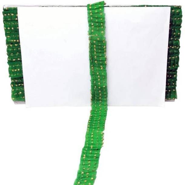 Woven Lace K-254456-Green 25mm Glitter Zari Net Frill F...